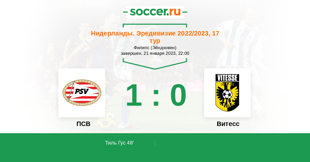 В этом матче между командами ПСВ и Витесс Арнем фаворитом является команда хозяев поля. Которые находятся в верхней части турнирной таблицы и продолжают бороться за попадания в зону Лиги Чемпионов. Удачи
