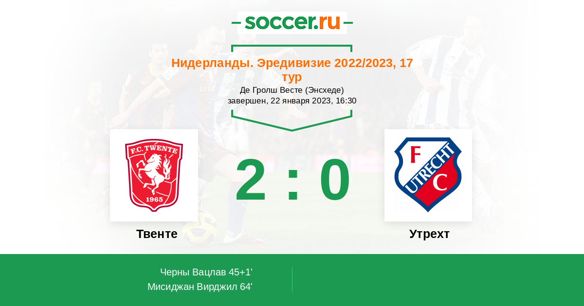 Протокол матча Твенте против Утрехт