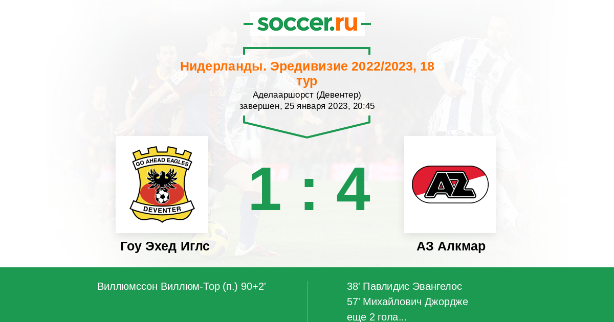 Протокол матча Гоу Эхед Иглс против АЗ Алкмар