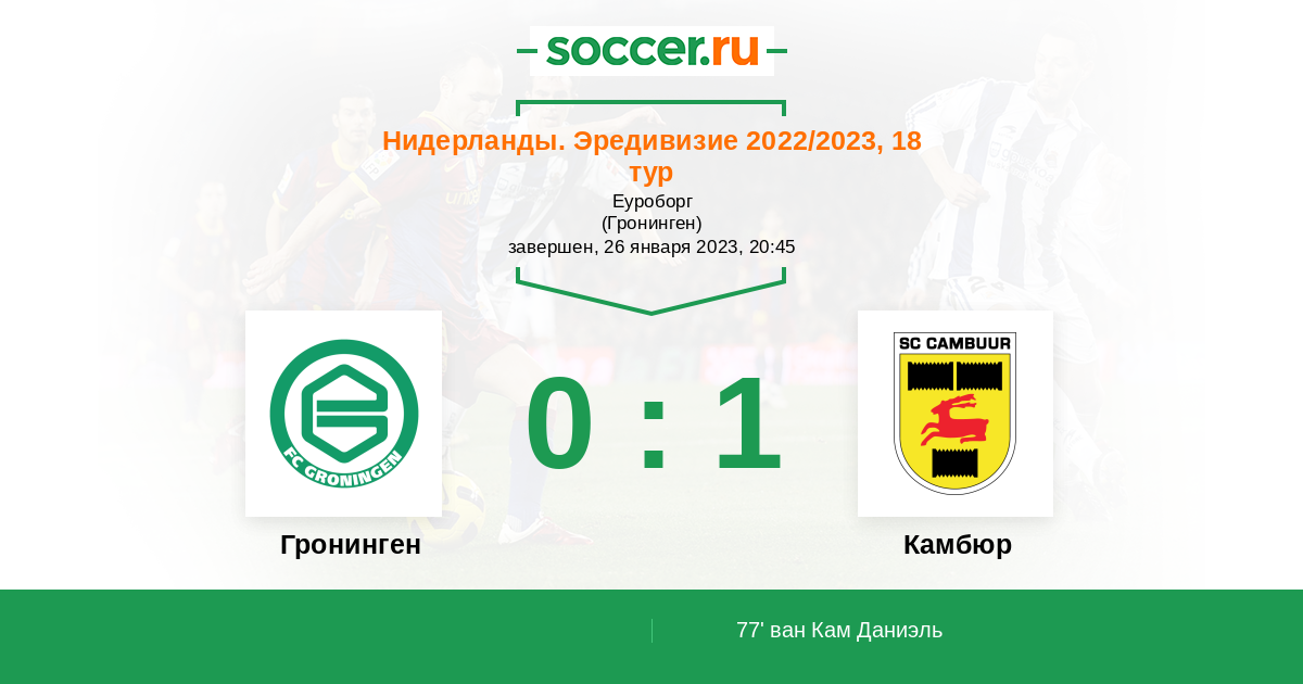 Протокол матча Гронинген против Камбюр