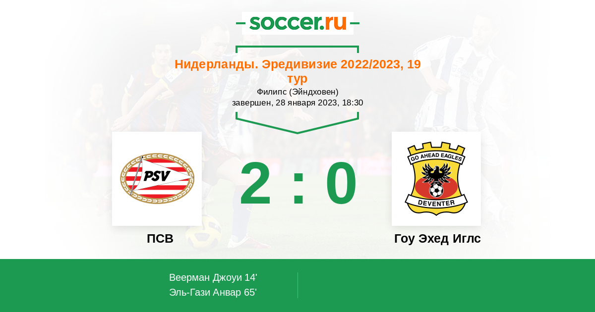 Протокол матча ПСВ против Гоу Эхед Иглс