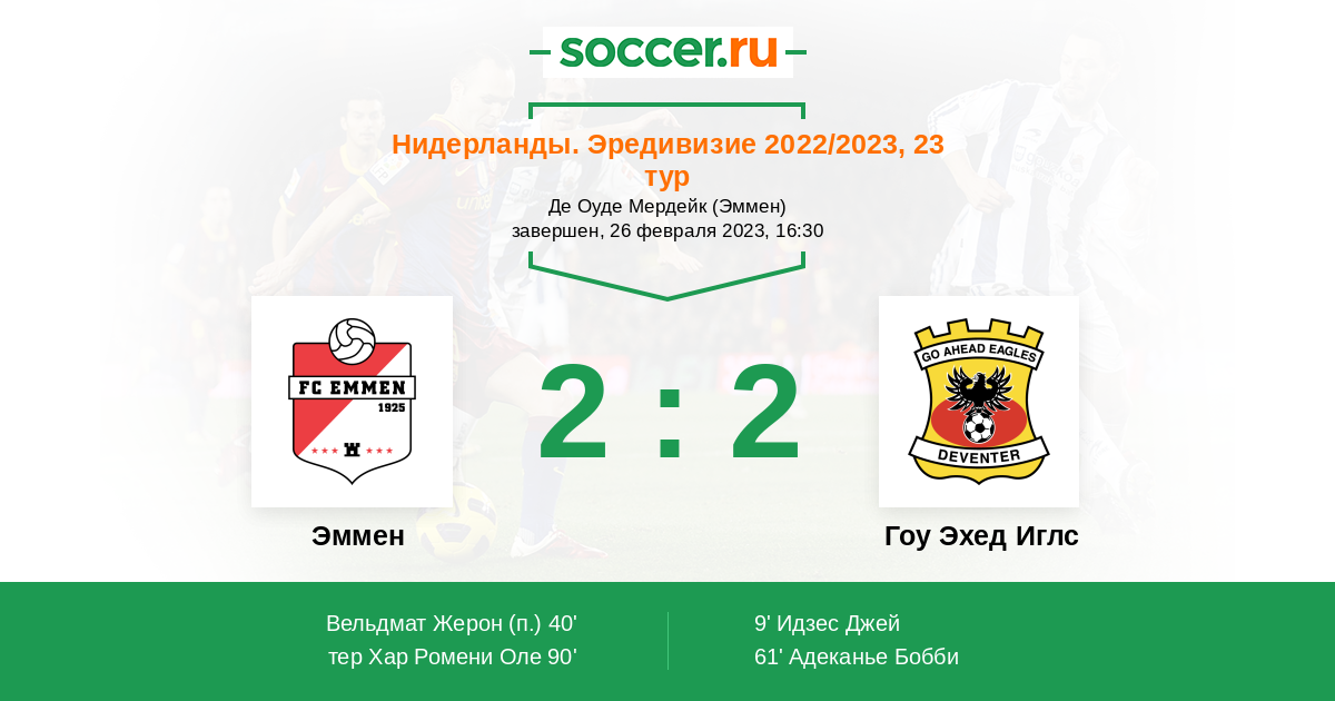 61' (1:2) Адеканье Бобби (11) (Стоккерс Финн (27))
