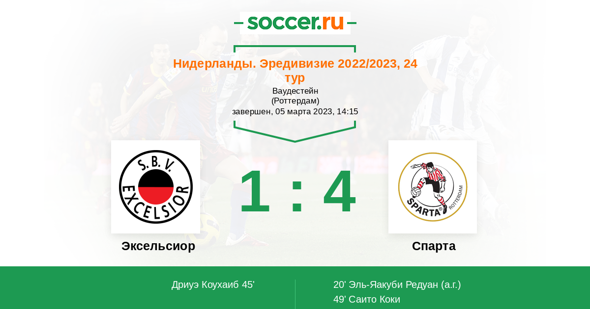Протокол матча Эксельсиор против Спарта