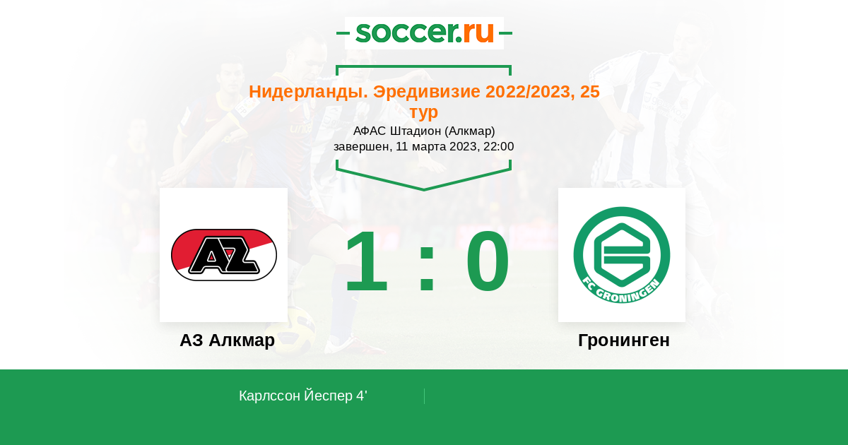 Протокол матча АЗ Алкмар против Гронинген