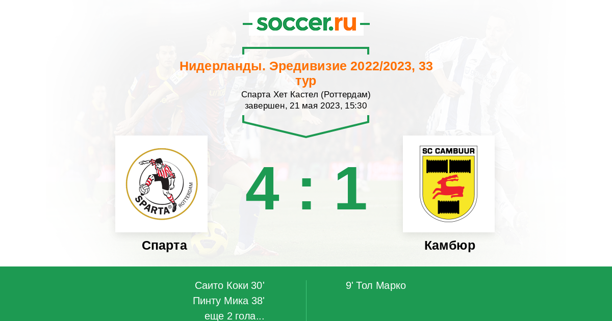 Протокол матча Спарта против Камбюр