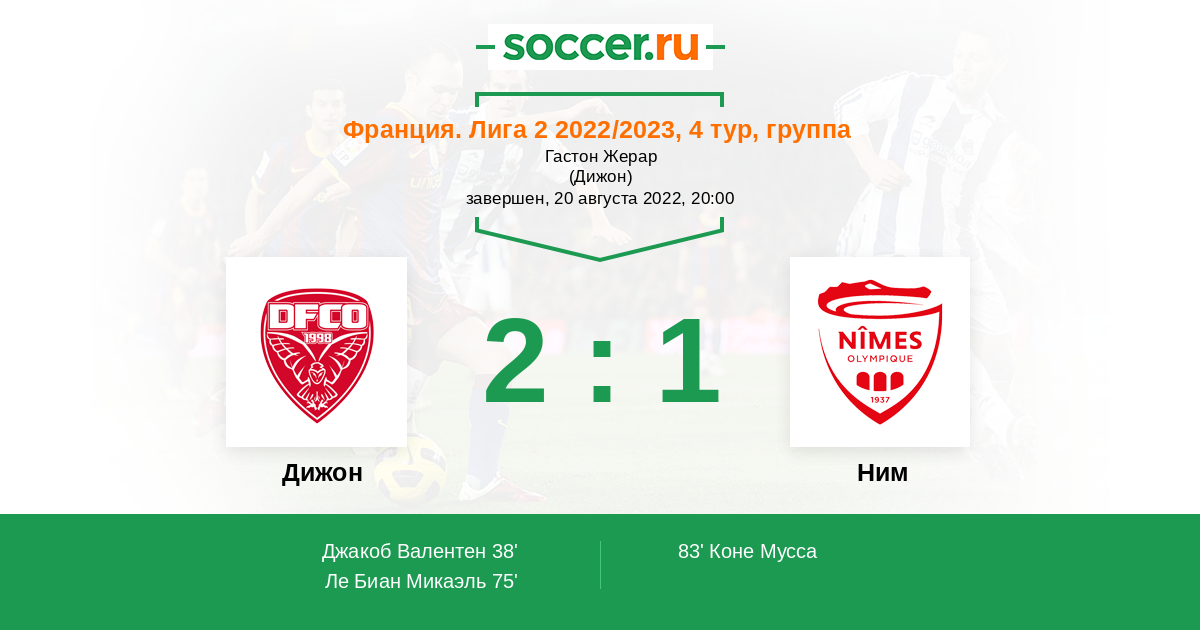 Протокол матча Дижон против Ним