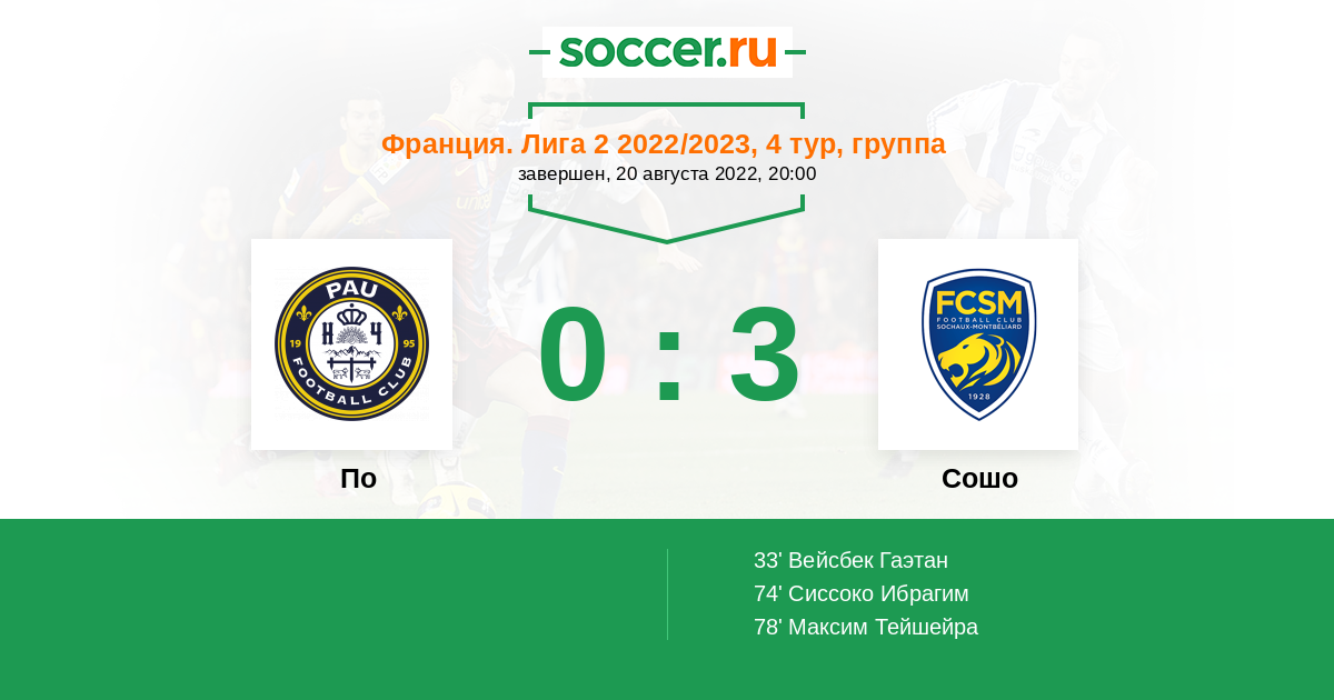 Протокол матча По против Сошо