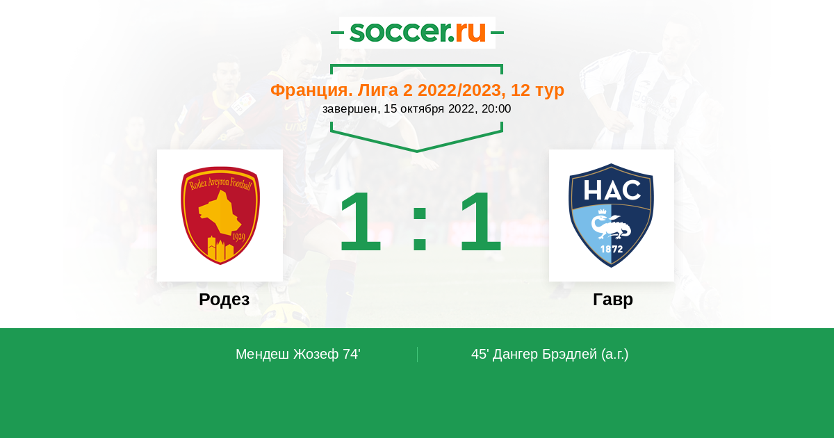 Протокол матча Родез против Гавр
