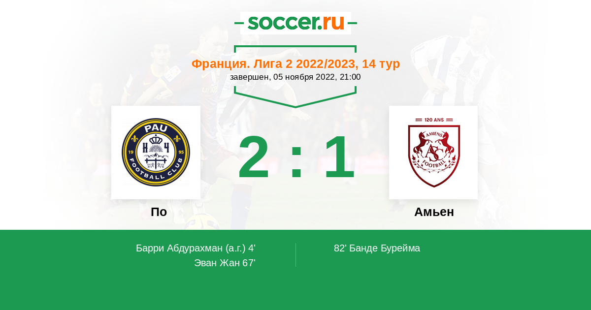 Протокол матча По против Амьен