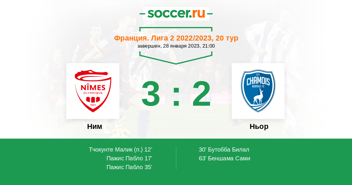 Протокол матча Ним против Ньор