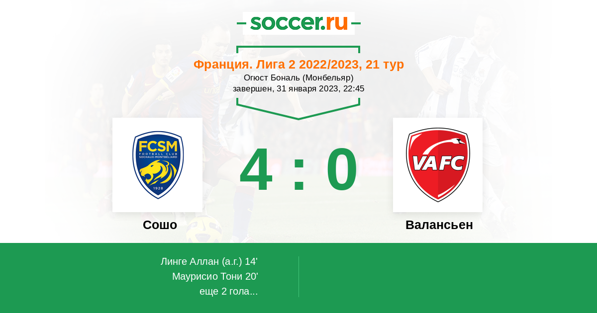 64' (3:0) Думбия Мусса (70) (Вейсбек Гаэтан (10))