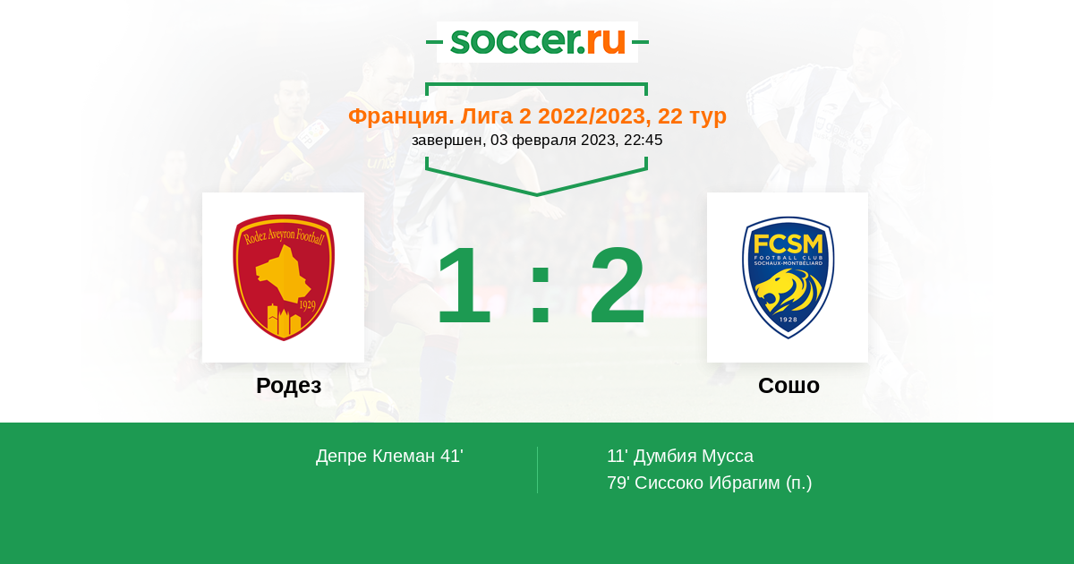 Протокол матча Родез против Сошо