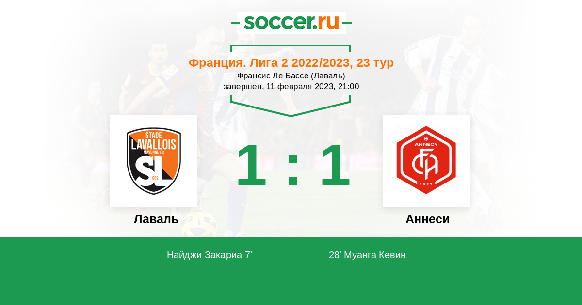 28' (1:1) Муанга Кевин (14) (Демонси Йоханн (24))