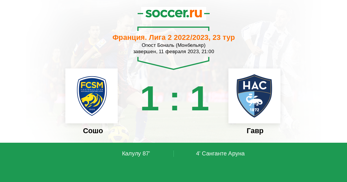 Протокол матча Сошо против Гавр