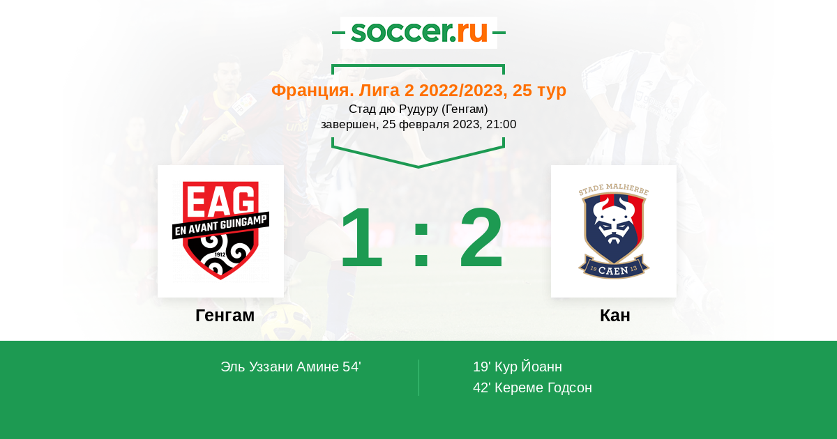 Протокол матча Генгам против Кан