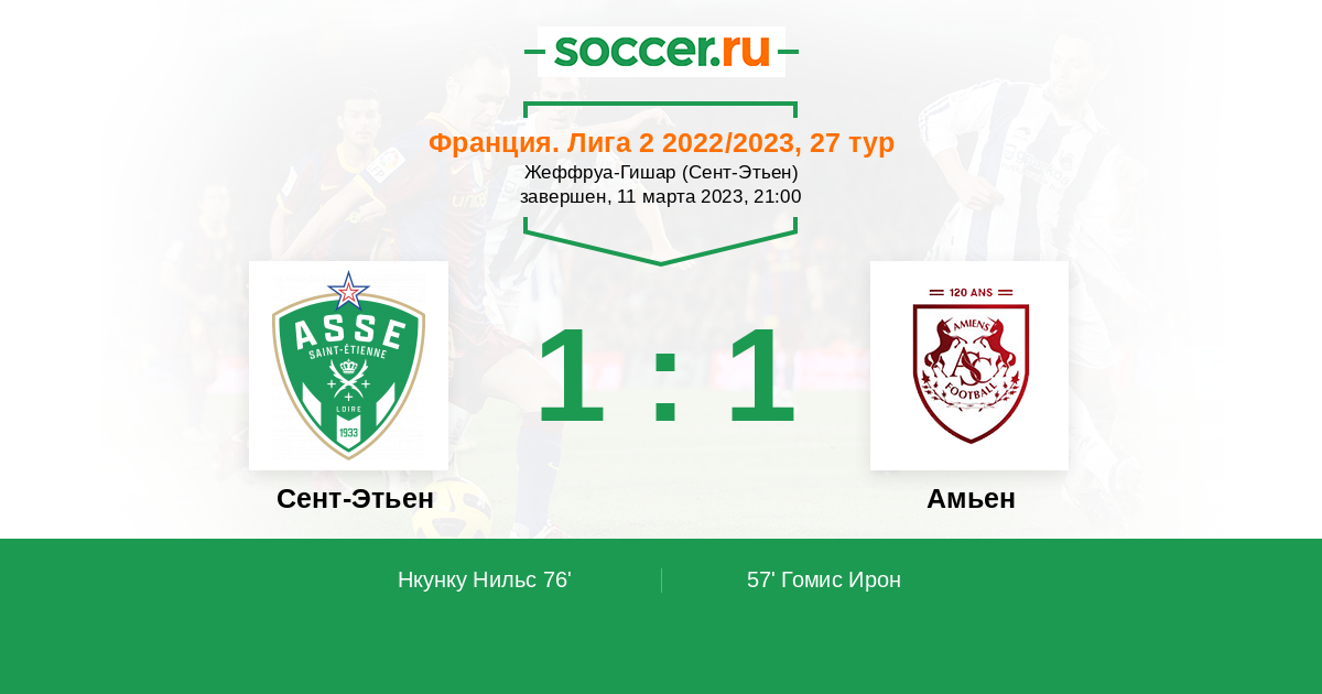 Протокол матча Сент-Этьен против Амьен