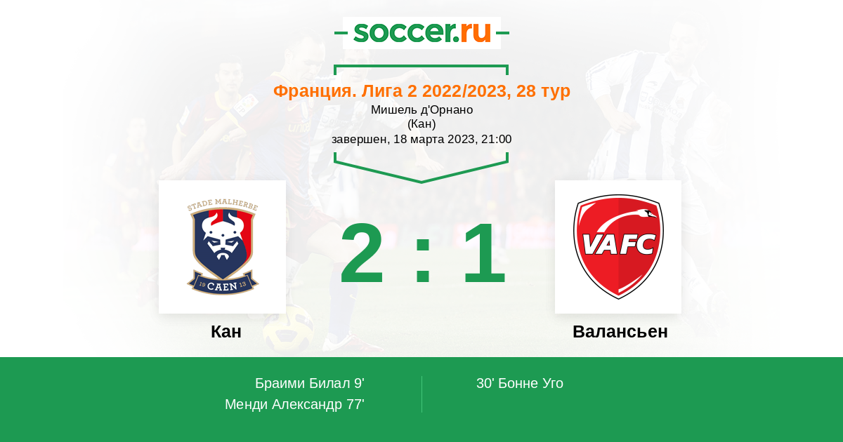 Протокол матча Кан против Валансьен
