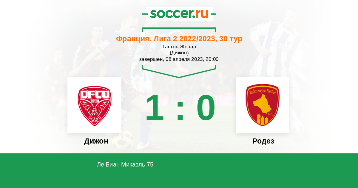 Протокол матча Дижон против Родез