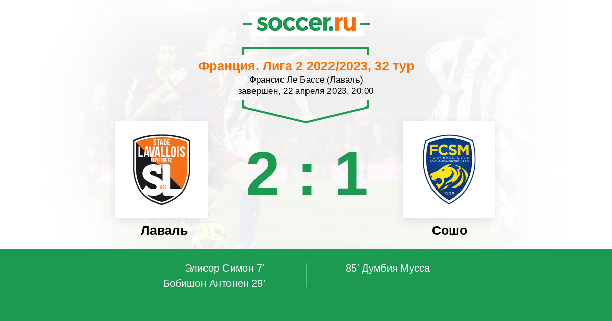Протокол матча Лаваль против Сошо