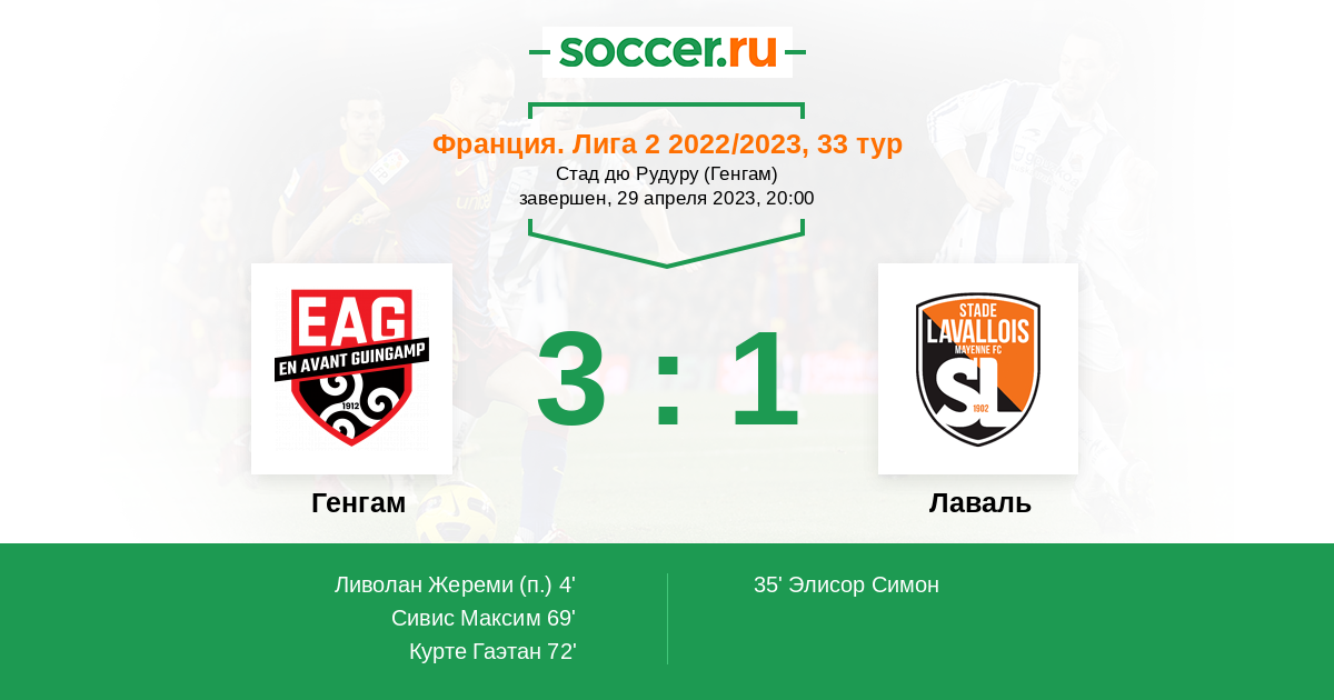 Протокол матча Генгам против Лаваль