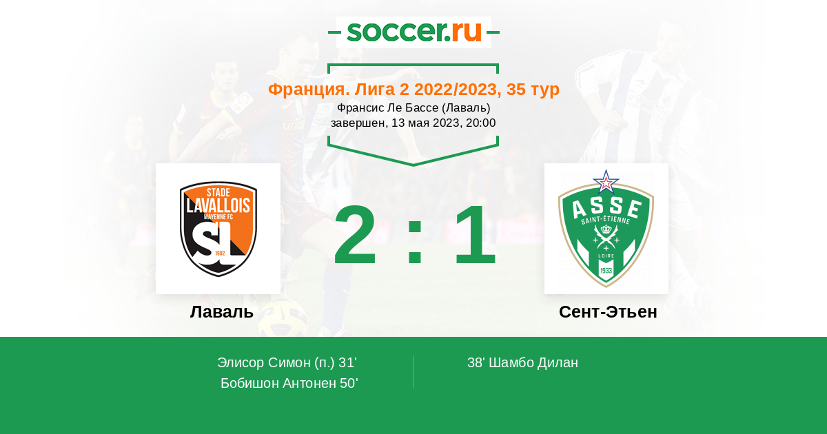 Протокол матча Лаваль против Сент-Этьен