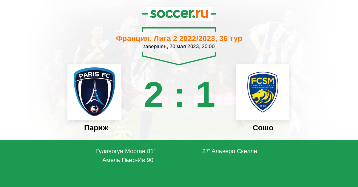 Протокол матча Париж против Сошо
