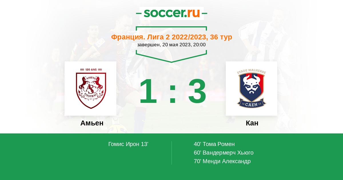 Протокол матча Амьен против Кан