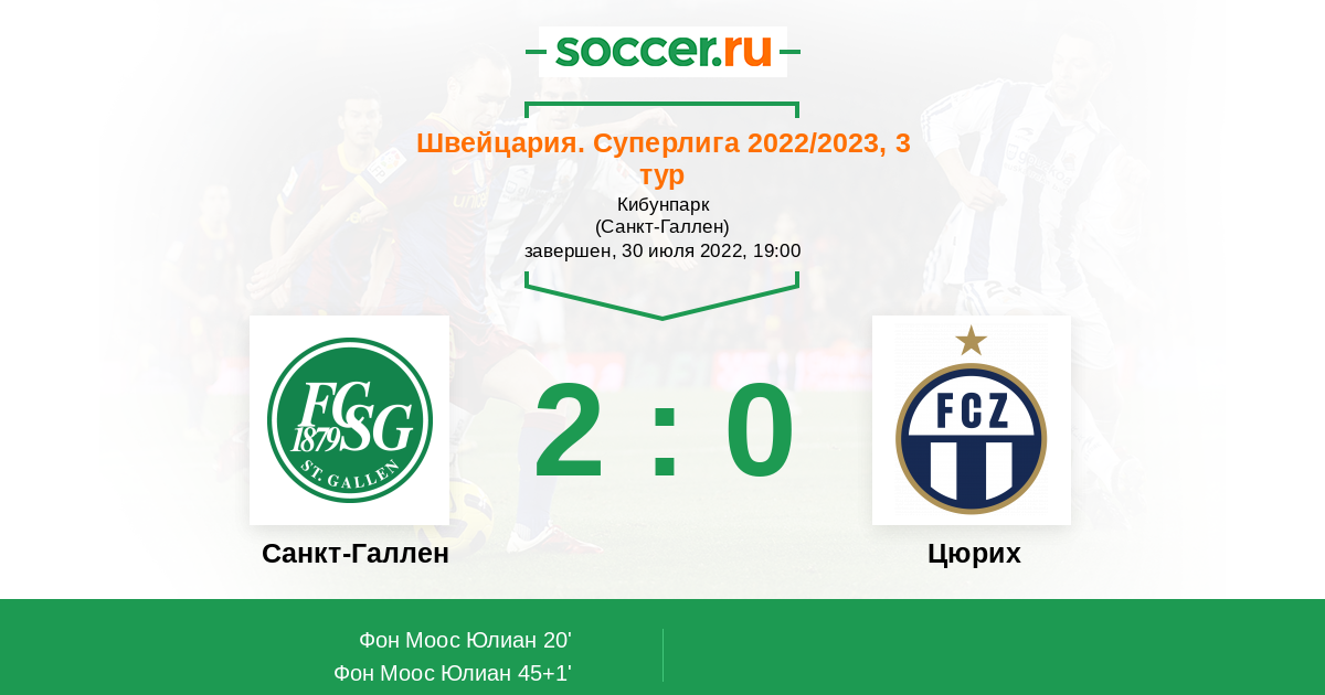 45+1' (2:0) Фон Моос Юлиан (11) (Суттер Патрик (30))