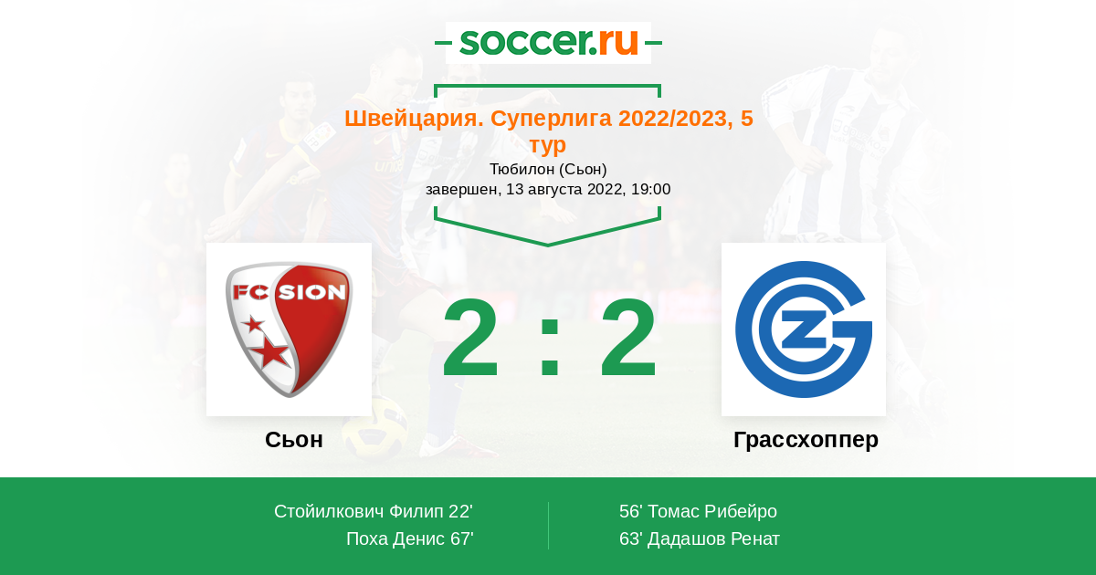 56' (1:1) Томас Рибейро (14) (Пушич Петар (10))