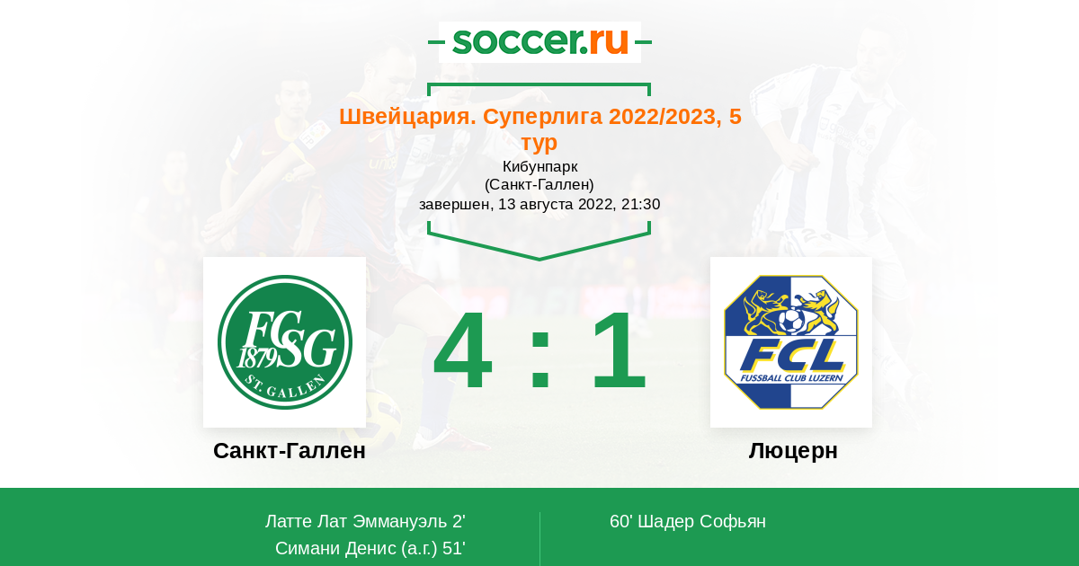 Протокол матча Санкт-Галлен против Люцерн