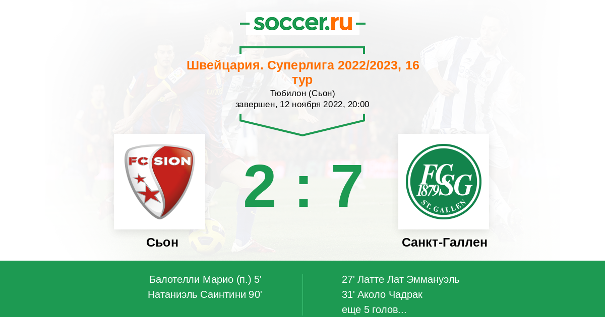 Протокол матча Сьон против Санкт-Галлен