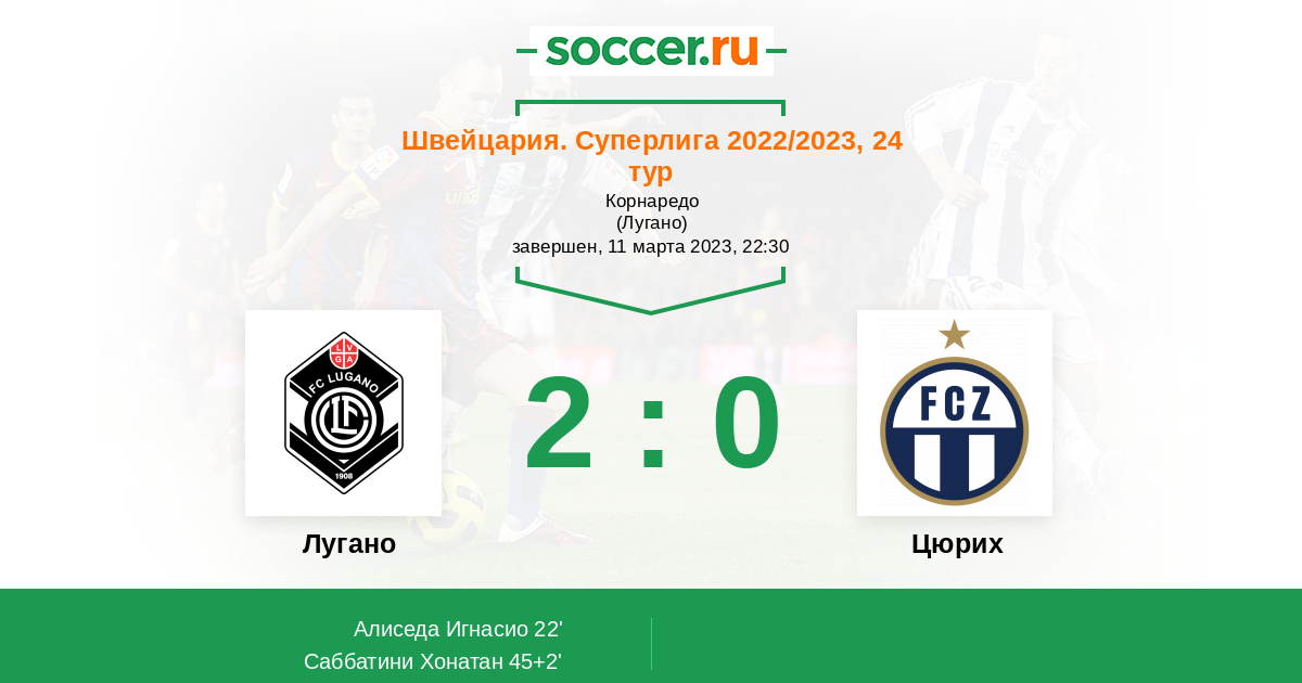 Протокол матча Лугано против Цюрих