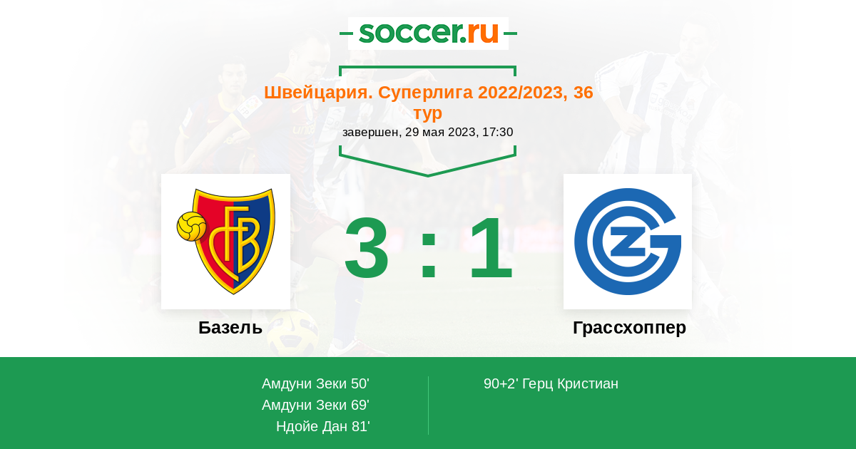 Протокол матча Базель против Грассхоппер