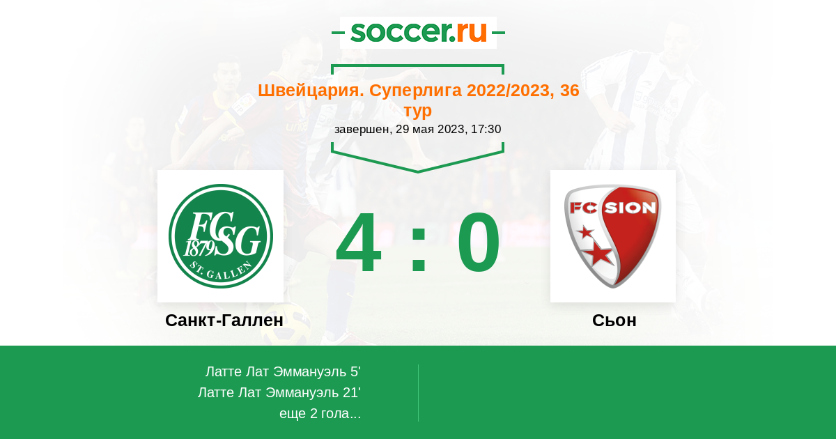 Протокол матча Санкт-Галлен против Сьон