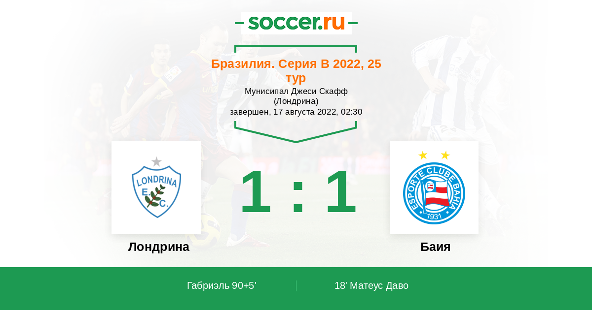 Протокол матча Лондрина против Баия