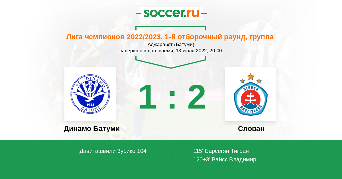 В сегодняшнем матче где "Динамо" Батуми на своем поле будет принимать команду "Слован" в ответном матче квалификации лиги чемпионов. В гостях на поле команды "Слован", команда "Динамо" смотрелась очень достойно и даже в некоторых моментах лучше, чем Слован, хотя пришлось играть весь тайм в меньшинстве. И наверное можно согласится с букмекерами, что "Динамо" являются фаворитами этого матча.