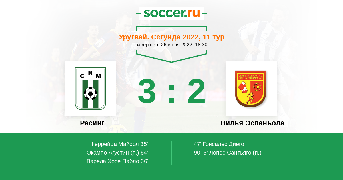 Протокол матча Расинг против Вилья Эспаньола