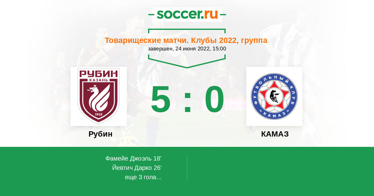 Протокол матча Рубин против КАМАЗ
