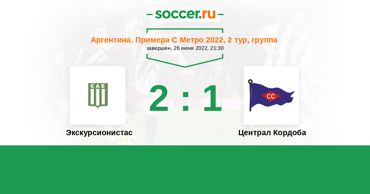 Аргентина. Примера С Метро 08.09.2021 Централ Кордоба Логотип футбольный клуб Централ Кордоба 0:2 Логотип футбольный клуб Экскурсионистас (Буэнос-Айрес) Экскурсионистас