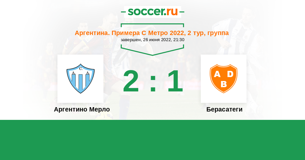 Аргентина. Примера С Метро 16.06.2021 Берасатеги Логотип футбольный клуб Берасатеги (Буэнос-Айрес) 1:3 Логотип футбольный клуб Аргентино Мерло Аргентино Мерло