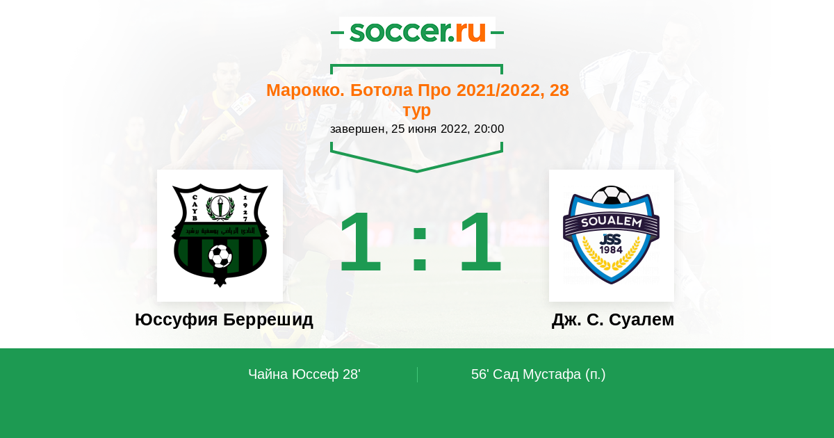 Протокол матча Юссуфия Беррешид против Дж. С. Суалем