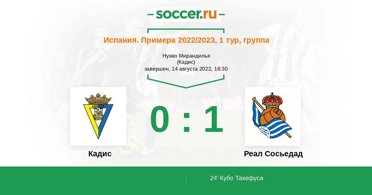 Протокол матча Кадис против Реал Сосьедад