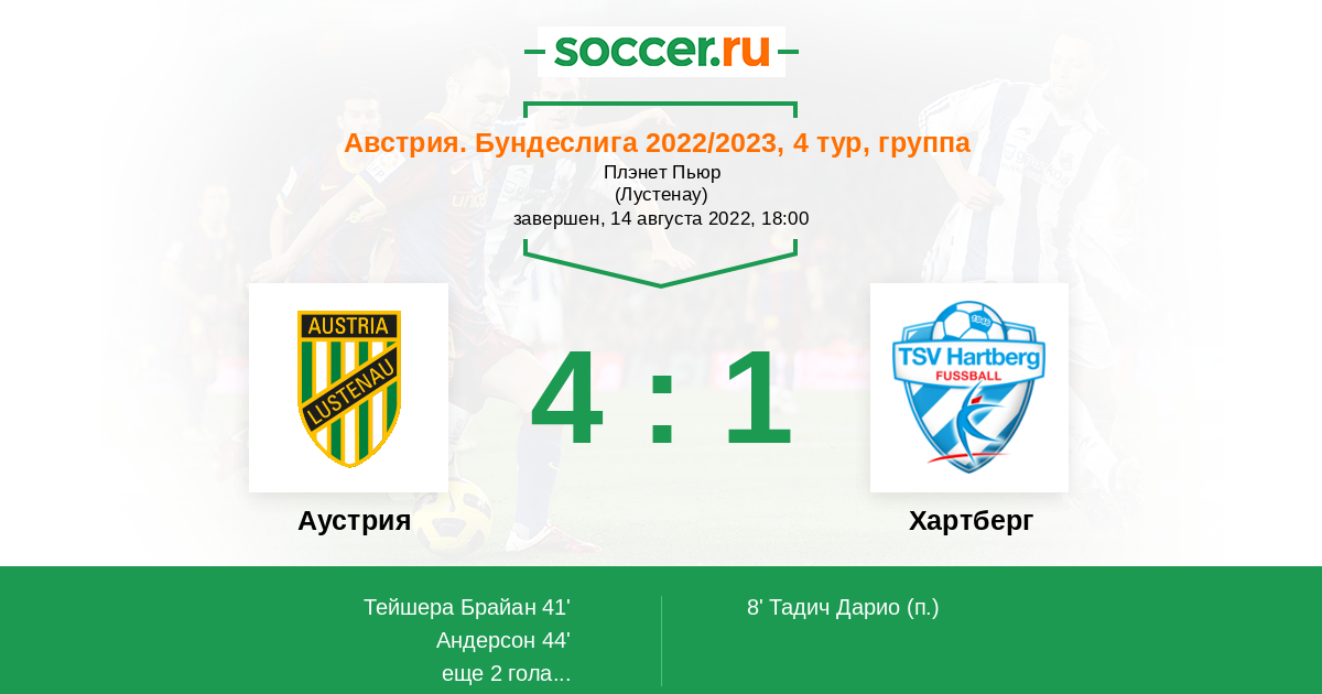 Протокол матча Аустрия против Хартберг