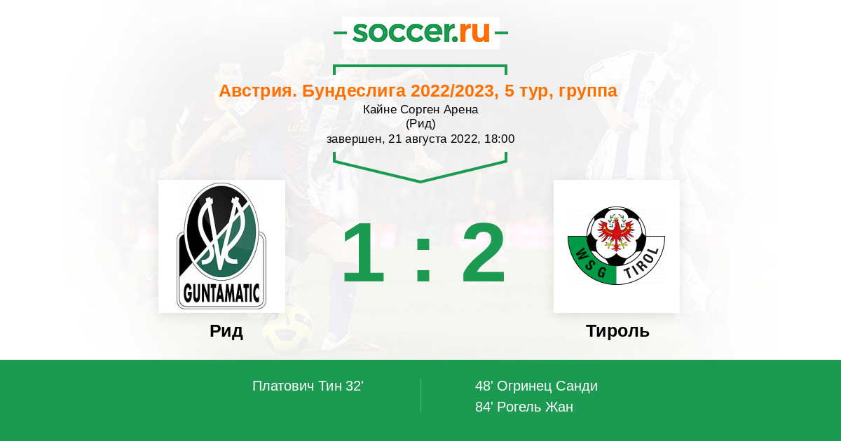 Протокол матча Рид против Тироль