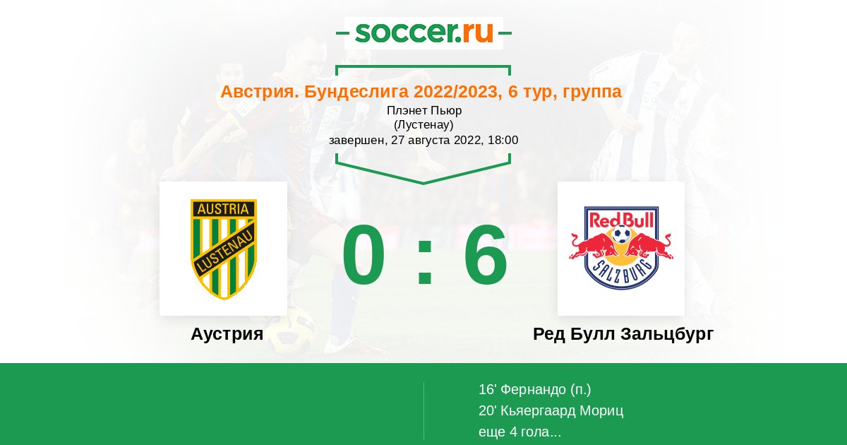 Протокол матча Аустрия против Ред Булл Зальцбург