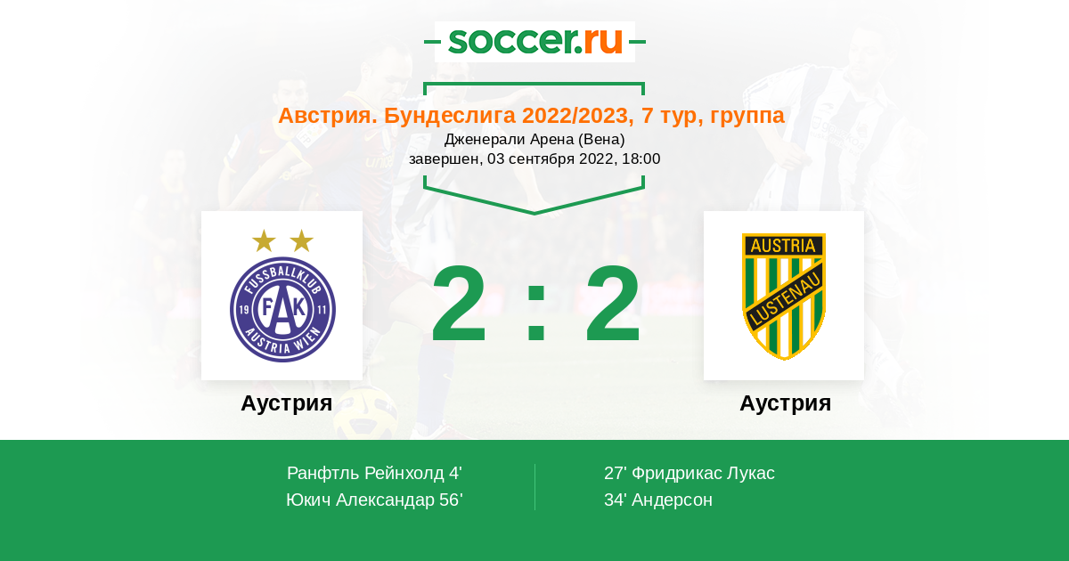 Протокол матча Аустрия В против Аустрия Л