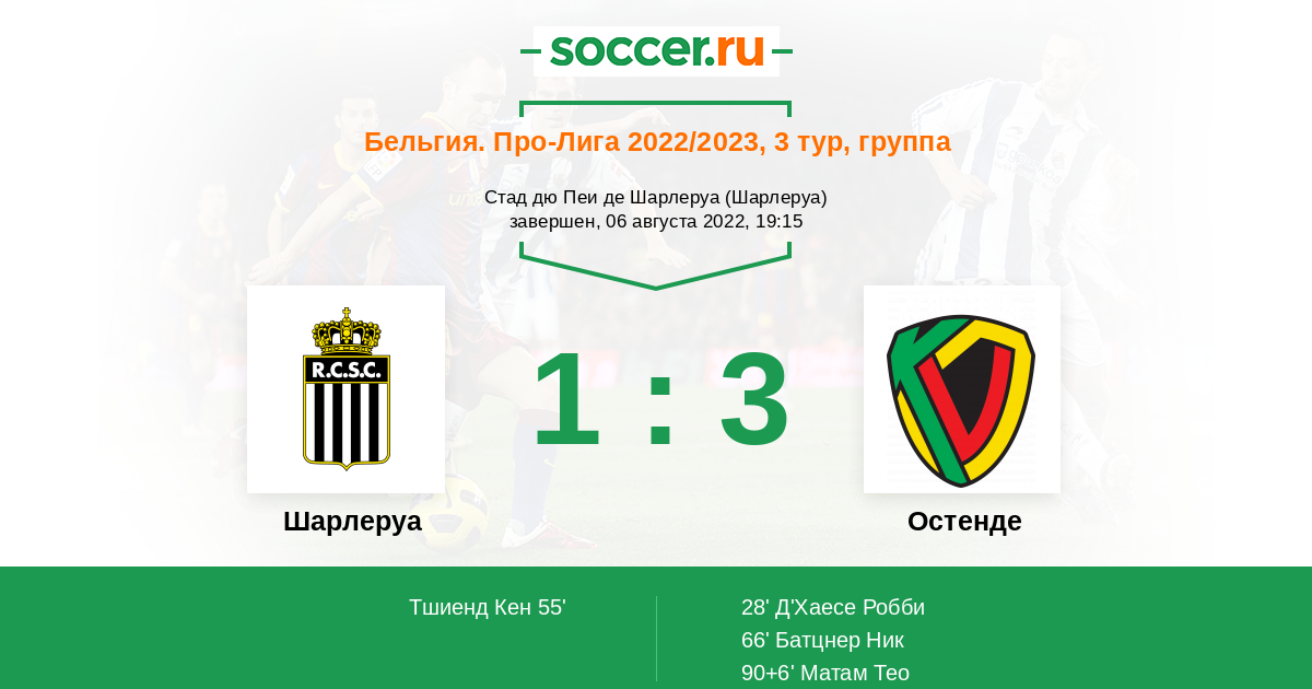 Протокол матча Шарлеруа против Остенде