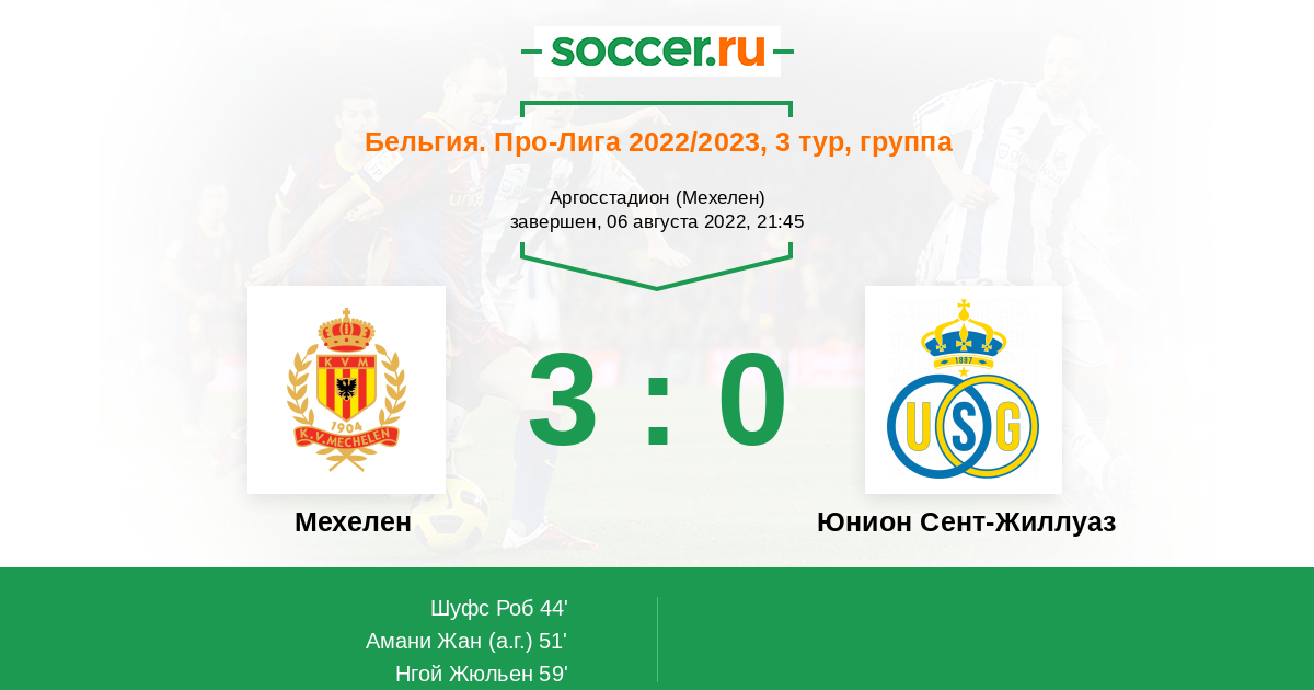 Протокол матча Мехелен против Юнион Сент-Жиллуаз