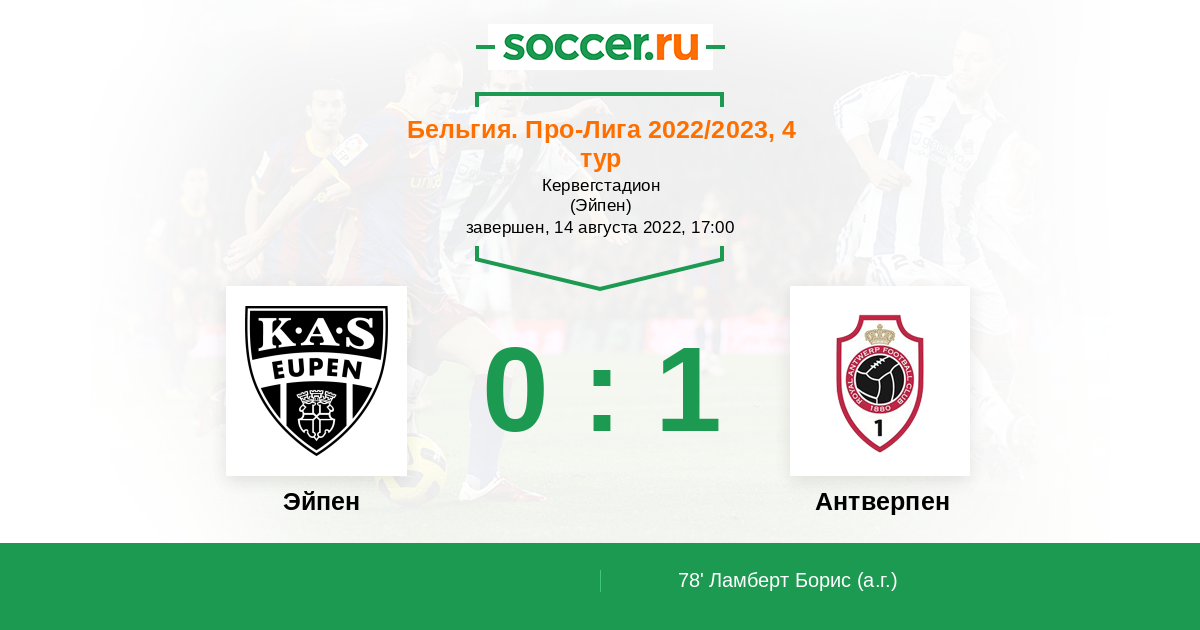 Протокол матча Эйпен против Антверпен