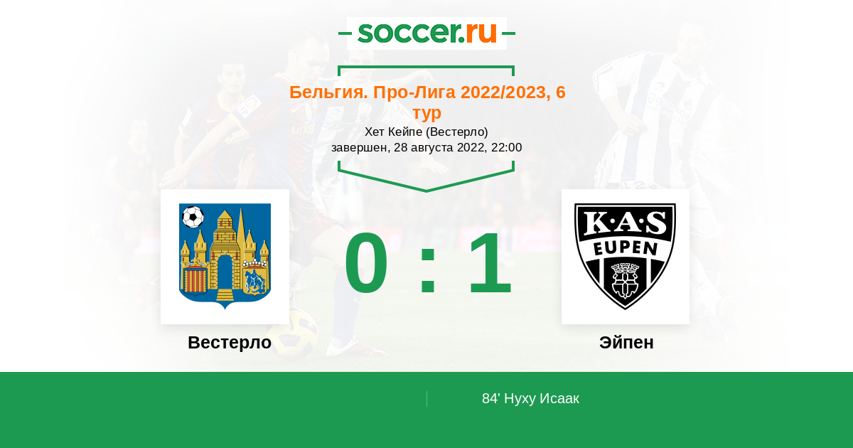 Протокол матча Вестерло против Эйпен
